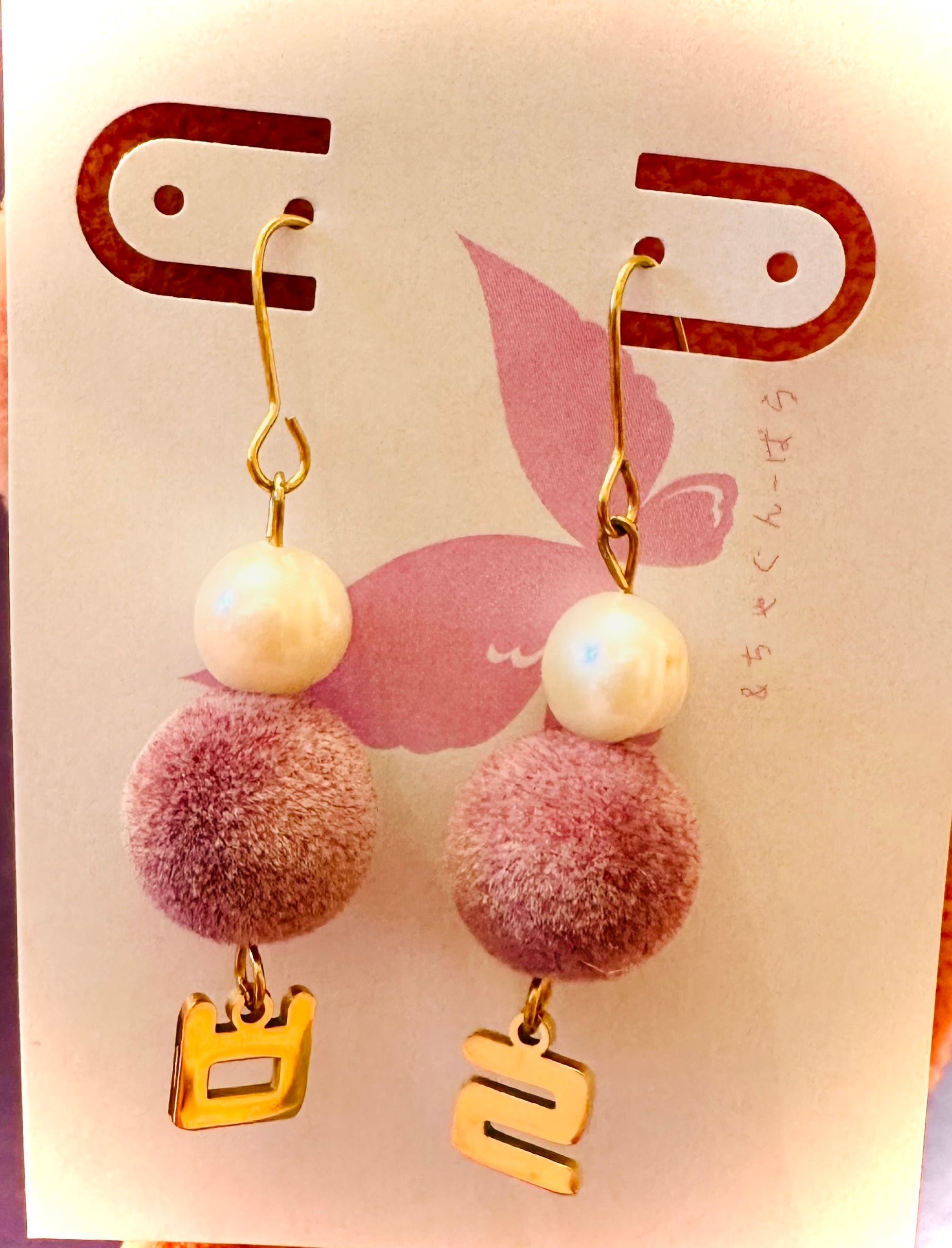 真珠とポンポンとハングル(바람パラン(風))を手に入れて、あなたのファッションに一味違うアクセントをプラスしてみませんか?おしゃれで特別なコーディネートを楽しむための必需品です!