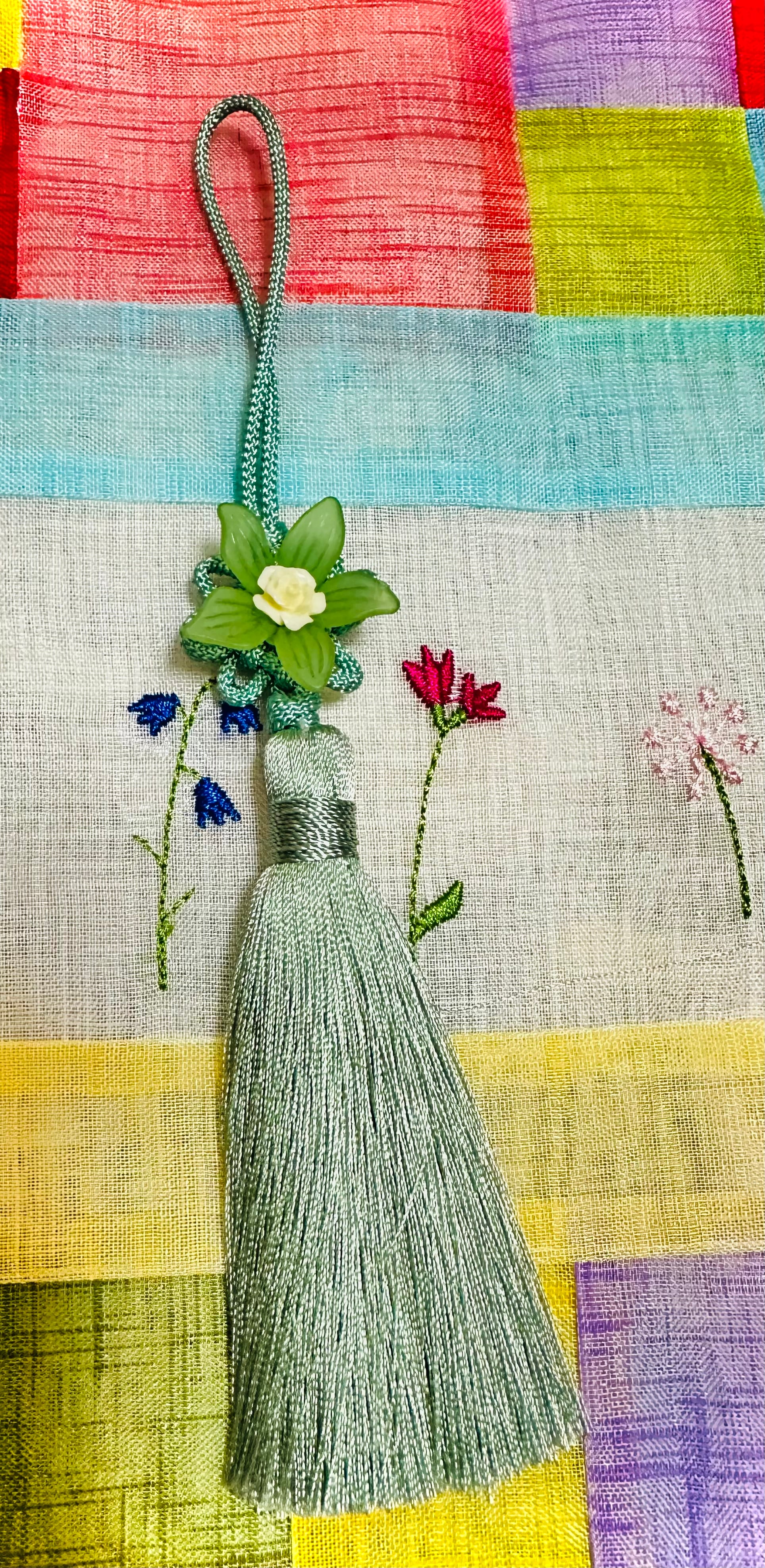 緑の花のノリゲは、自然の美しさとエレガンスを兼ね備えた特別なアイテムです。豊かな緑色の花デザインが、あなたの空間を一層引き立てます!