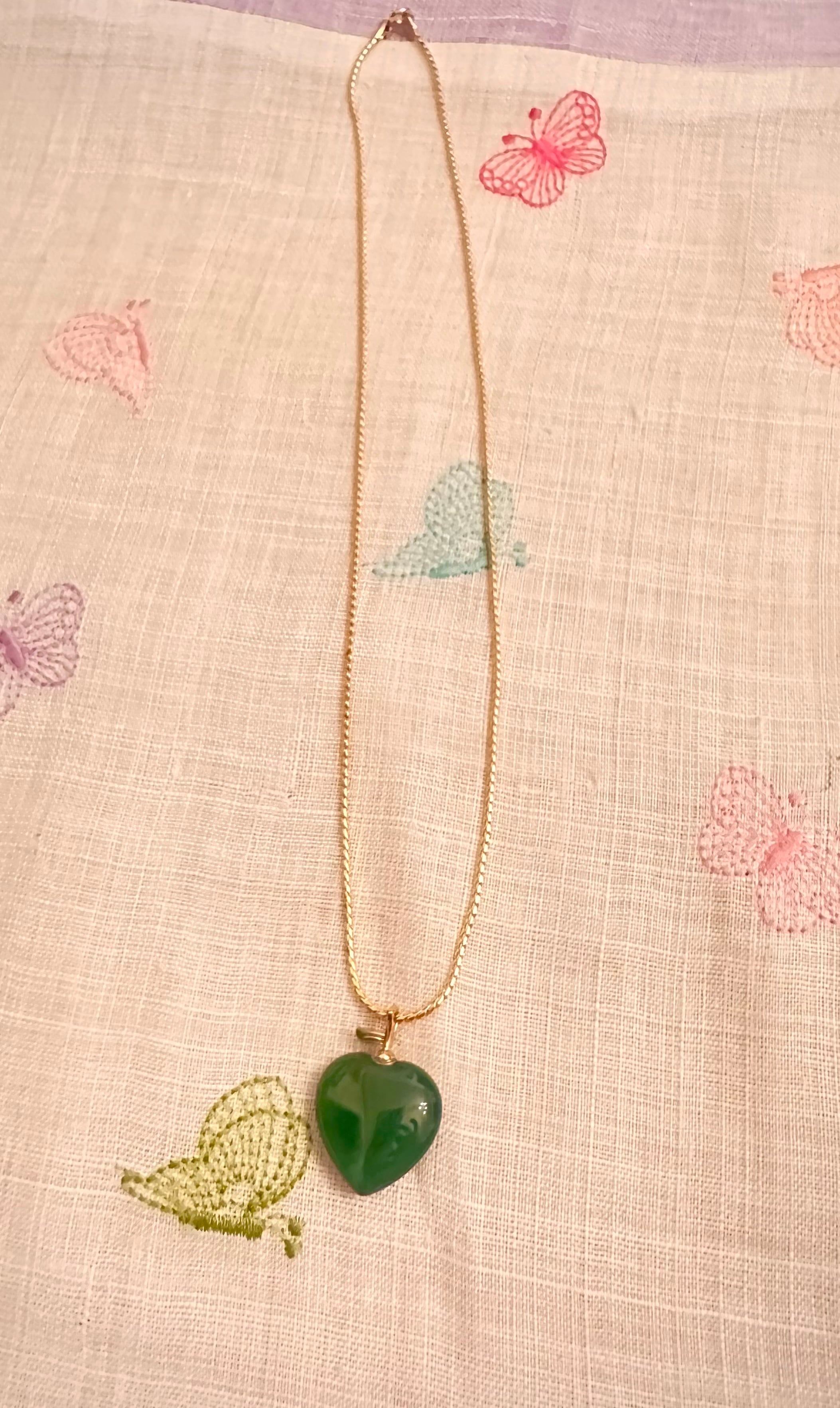 ハートりんごのアベンチュリンシルバーネックレス(金加工)